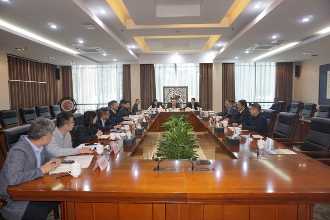 10月23日上午,苏州工业职业技术学院校长马延文一行来校调研。学校党委副书记、校长何学军,党委常委、副校长崔新明,党委常委、副校长潘旭海在行政楼辅楼一楼会议室接待来宾。学校相关职能部门负责同志参加交流。