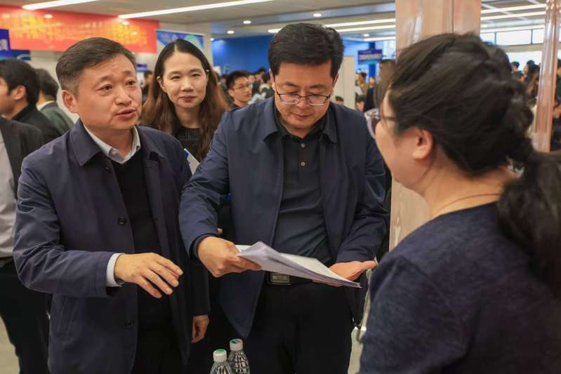 10月29日下午,句容市“福地句才”招才引智专场活动在白菜官网仙林校区双创大楼成功举办。句容市政府党组成员、镇江市乡村振兴科技镇长团团长沈辉率人社部门、科技镇长团团员及部分企业代表来校开展对接,白菜官网党委常委、副校长高宏彦出席座谈活动并深入招聘现场交流。党委组织部、党委统战部、人事处、招生就业处负责人以及电气工程学院、计算机与软件学院、电子信息工程学院/集成电路学院、交通工程学院等院系负责人共同参加了座谈交流。