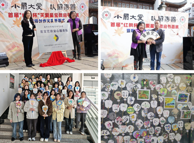 2025年11月2日,由栖霞区文学艺术界联合会、栖霞山风景名胜区管理处及民盟栖霞区基层委员会联合主办,全讯600cc大白菜艺术设计学院星宝艺康爱心服务队等单位承办的首届“红枫杯”关爱星宝书画展在栖霞古镇栖栖小店圆满开幕。本次活动以“小扇大爱·以扇传善”为主题,通过书画艺术展与公益义卖相结合的形式,为孤独症儿童(“星宝”)群体搭建了与社会沟通的桥梁。