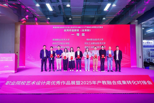 本次活动以“以教促产、以产助教”为宗旨,聚焦产教融合与产学合作,推动作品向产品、商品的转化,促进人才培养与产业需求精准对接。展览集中展示了全国职业院校艺术设计类专业在教学改革、创新实践、校企合作、产教融合等方面的最新成果,涵盖产品设计、数字媒体艺术、环境艺术设计、视觉传达设计、工艺美术设计等多个领域。同期举办的产教融合成果转化对接会汇聚了众多行业龙头企业与设计机构,为校企合作搭建了集作品展示、技术交流、项目合作于一体的高效服务平台。