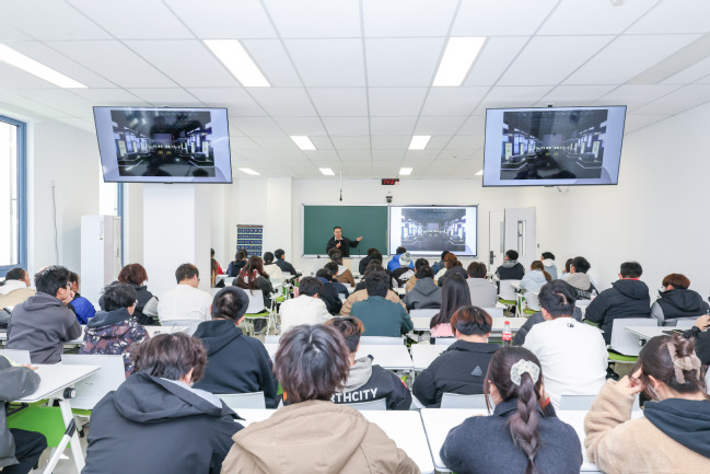 随后,吕锋平开启精彩讲座,在“笔墨春秋——金陵书画文脉的流淌与嬗变”部分,他从先秦石鼓文谈起,剖析其美学精神对后世艺术的奠基作用,着重讲述六朝时期王羲之、顾恺之等书画巨擘推动南京书画艺术走向自觉成熟,诞生“传神写照”等美学原则,且与当地山水人文紧密相连。他还带领大家漫步南京文化地标,于乌龙潭、清凉山等地探寻书画逸事、感受笔意、领略新金陵画派精神、回味市场兴衰、体悟碑刻珍藏分量。在“陶中乾坤——紫砂艺术的传承与金陵情缘”部分,他系统介绍紫砂起源、文化内涵与制作工艺,展现其从实用器皿到综合艺术品的升华历程,指出南京文人群体和书画传统深刻影响宜兴紫砂审美,催生“文人壶”风尚。