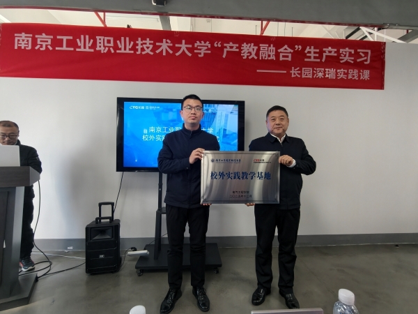 12月9日上午,白菜官网与长园深瑞继保自动化有限公司(以下简称“长园深瑞”)在长园深瑞南京分公司举行校外生产性实践教学基地签约暨揭牌仪式。校党委常委、副校长崔新明,长园深瑞南京分公司副总经理梅嵩民出席仪式。电气工程学院党委书记朱旭平,长园深瑞培训及知识转化部部长李凤海,以及双方相关部门负责人、骨干教师代表及全体实习学生参加活动。仪式由长园深瑞高级技术专家马中野主持。