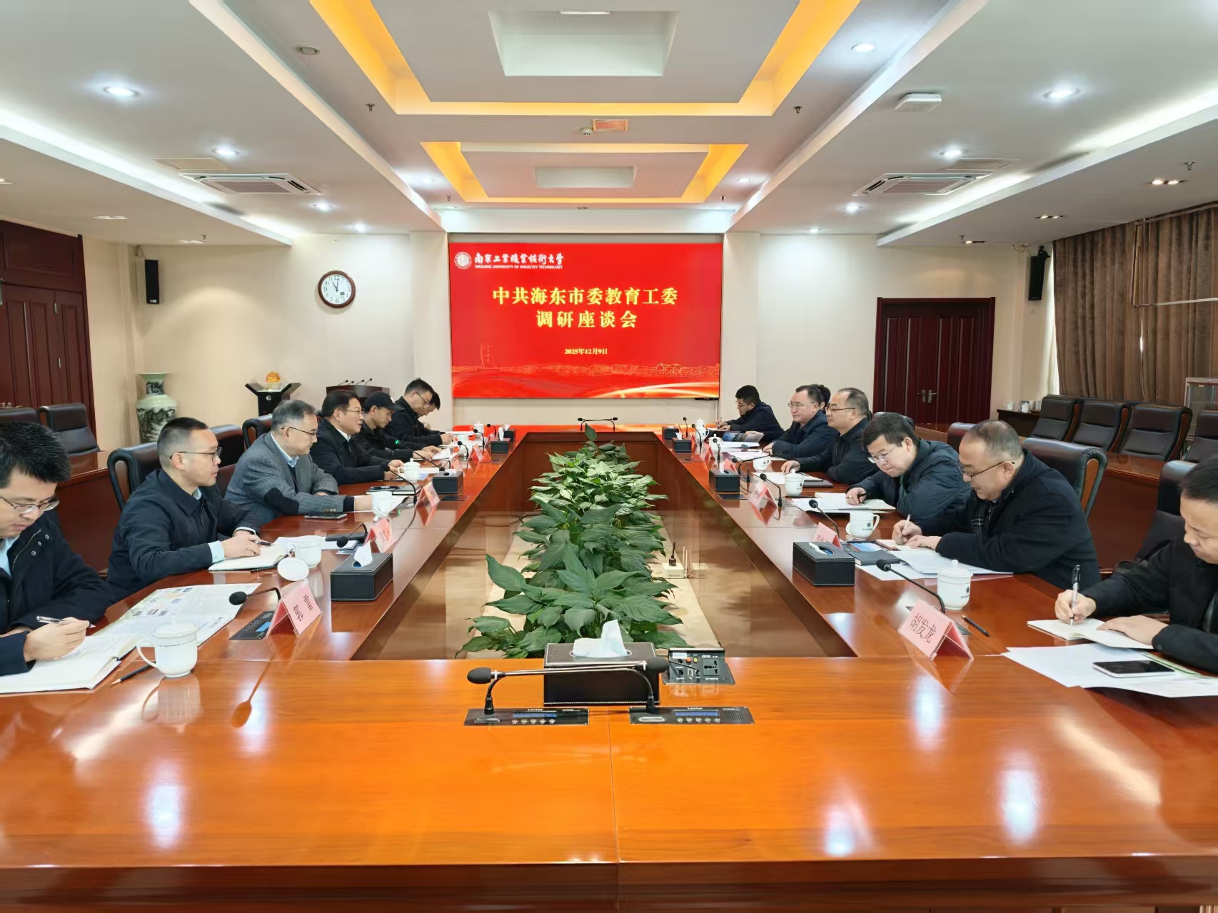12月9日上午,海东市委副书记、教育工委书记王述友一行来校调研,白菜官网党委副书记、校长何学军,党委常委、纪委书记邱正祥,党委常委、副校长潘旭海在行政楼辅楼一楼会议室接待来宾,座谈会由潘旭海主持,学校相关部门负责同志参加座谈。
