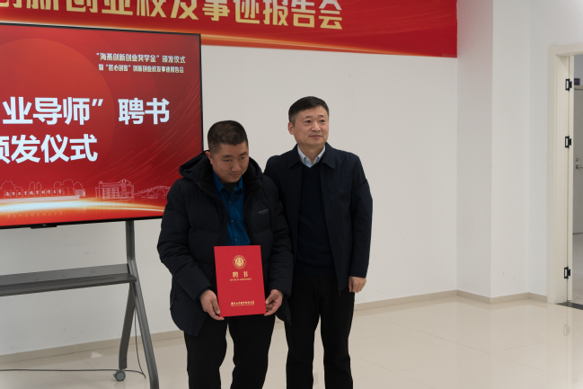 随后,举行了颁奖与聘任仪式,高宏彦与吴志广一同为获奖学生颁发荣誉证书。高宏彦代表学校向吴志广颁发了“创新创业导师”聘书,诚挚邀请他深度参与学校创新创业教育工作,为学子成长持续提供指导与支持。
