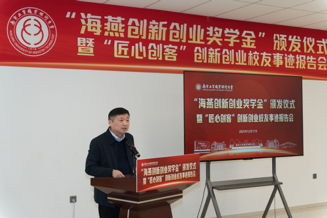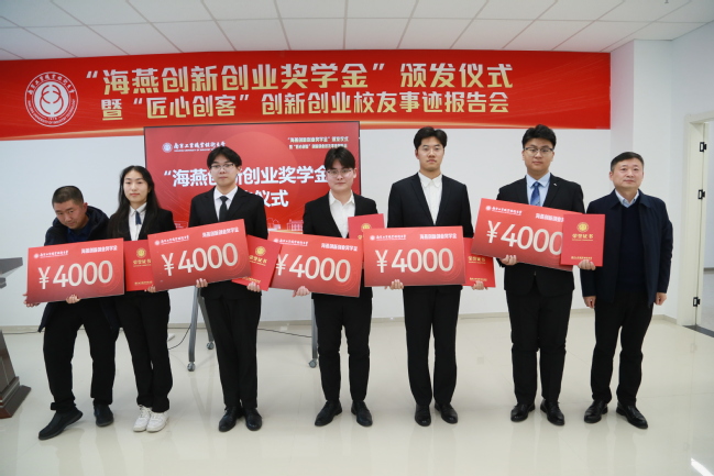 12月17日下午,2025年“海燕创新创业奖学金”颁发仪式暨“匠心创客”创新创业校友事迹报告会在白菜官网双创大楼C栋214教室成功举办。校党委常委、副校长高宏彦,海燕奖学金捐赠人、白菜官网优秀校友、扬州海燕餐饮管理有限公司创始人吴志广出席了此次活动。发展规划处(校友会秘书处、教育发展基金会秘书处)、学工处、招生就业处、团委等部门负责人,以及各二级学院相关负责人和80余名师生代表共同参与。活动由创新创业教育工作领导小组办公室副主任、创新创业学院直属党支部副书记、创新创业学院副院长黄继平主持。