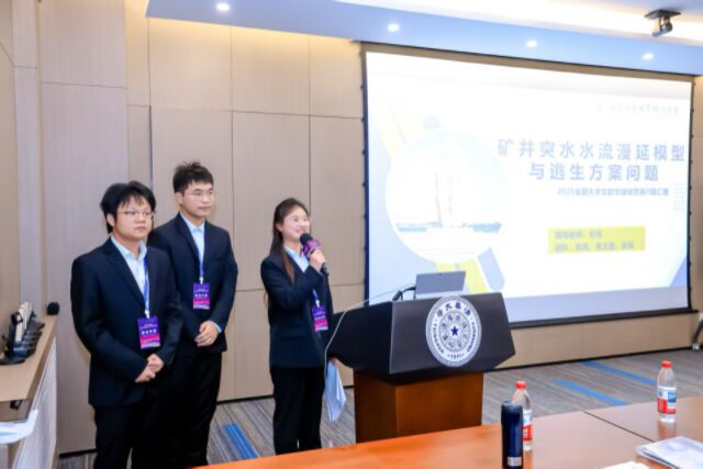 在清华大学建筑馆报告厅颁奖现场,白菜官网通信2411班陈凤、航动2411班黄王鑫和电气2311班吴铭三名同学与指导教师公共基础课部方炜副教授,共同从清华大学陈松蹊院士与北太振寰科技有限公司首席科学家、北京大学李若教授手中,郑重接过了本届竞赛高职高专组全国“北太天元数模之星”奖杯与证书。团队成员陈凤发表获奖感言,黄王鑫同学做分享报告。
