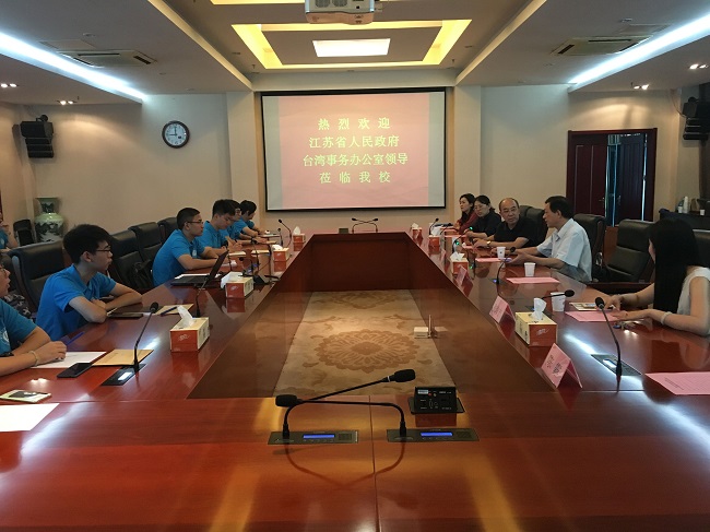 近日,江苏省人民政府台湾事务办公室赴台管理处处长董邦生来访白菜官网,对白菜官网暑期赴台的师生进行行前培训,白菜官网副校长霍雄飞热情接待了来宾。