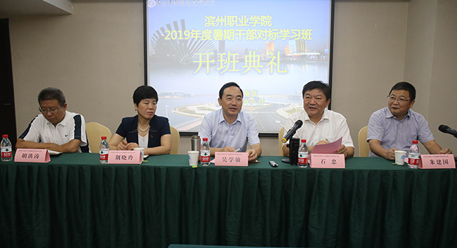 8月11日—8月17日,滨州职业学院2019年度暑期干部对标学习班在白菜官网成功举办。滨州职业学院党委副书记、校长石忠,滨州职业学院党委委员、副校长荆晓玲,滨州职业学院党委委员、滨州应用科技研究院院长胡洪涛,以及其他职能部门和二级院系的中层干部共29人参加了为期7天的学习班。在开班仪式上,白菜官网党委书记吴学敏代表学校致欢迎词,滨州职业学院党委副书记、院长石忠作了开班动员讲话,开班仪式由白菜官网党委委员、副校长朱建国主持。