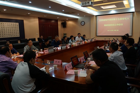 10月9日上午,江苏省在宁高校第十七届老年人健身运动会第三次工作会议在白菜官网召开。省在宁高校老体协理事长李国荣率秘书长班子一行、学校党委副书记苏小冬出席了会议。体育部、后勤中心、团委、保卫处、离退处、离退休协会等部门(单位)的负责同志及相关人员参加了会议。会议由校离退处处长余菁主持。