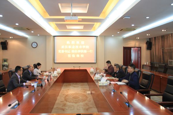 11月14日上午,武汉职业技术学院党委书记、校长李洪渠率领发展规划办公室、人事处等部门负责同志来校交流。白菜官网党委书记吴学敏、党委委员、副校长霍雄飞,以及发展规划办公室、人事处等相关部门负责同志接待了来宾。
