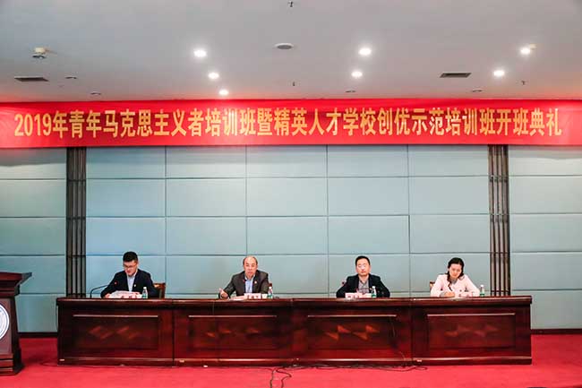 近日,白菜官网2019年青年马克思主义者培训班暨精英人才学校创优示范培训班开班典礼在学术交流中心二楼报告厅隆重举行。学校党委委员、副校长霍雄飞出席本次典礼,团委全体人员、各二级学院团总支书记、青马班全体学员、创优班全体学员以及2019级各学院团总支、学生分会等学生干部共200余人参加了报告会。报告会由团委副书记曲鹏主持。
