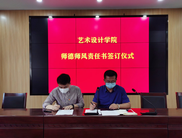 为进一步加强艺术设计学院各项工作科学合理、安全稳定、高效有序地推进,切实落实“一岗双责”,5月13日,艺术设计学院2020年度“落实全面从严治党责任书、教职工意识形态工作责任书、教职工师德师风责任书、网络安全责任书、三级/四级安全责任书”签订仪式在天堂校区六楼会议室举行。