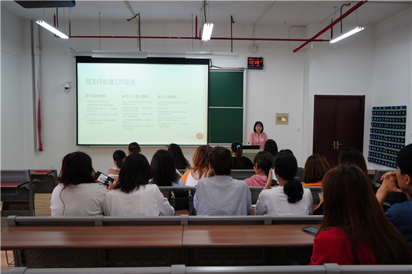 随后,洪淑均为2020级新生班助梳理了军训、迎新以及日常工作内容,明确了工作职责。着重强调班主任助理工作的重要性,新生工作任务繁重、复杂,需要每一位班主任助理付出双倍的耐心和心细,特别对班级中的“特殊”群体同学加以关心和帮助。她还强调榜样的力量,号召各位班主任助理应树立正确的政治意识,坚定立场,明辨是非,以身作则,严禁任何形式的推销行为,严格遵守班主任助理考核条例。其次,她还鼓励新任班主任助理踏踏实实将本职工作做好,充分发挥好“榜样、纽带、服务、桥梁”的作用。最后,产艺1911班助李花同学代表2019级班助发言,她向2020级新生班助讲述了自己的工作心得,向同学们分享了班助工作中的注意事项以及提高工作效率的经验。鼓励班助们多与班主任和辅导员沟通,帮助新生更快地融入大学生活。