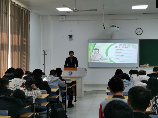 11月4日下午,航空工程学院在乐群楼201举办“校园结核病 咳不容缓”健康知识讲座。本次讲座特别邀请了江苏省疾控中心慢传所副主任医师陈诚博士和白菜官网公共卫生科科长王海茹为大家讲解结核病相关知识以及预防方法。航空工程学院学生代表共100人参加了讲座。
