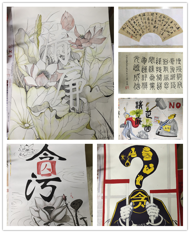 为进一步推进校园廉政文化建设,大力弘扬清正廉洁之风,倡导社会主义核心价值观和中华民族的传统美德,努力构建和谐文明的校园环境,近日,艺术设计学院党总支、团总支联合校书法协会、绘画协会,组织开展了“风清气正廉洁校园”主题书法绘画比赛。全校132名同学踊跃参与,共创作参赛作品141幅,充分发挥了廉洁文化的育人作用,展示了学院廉政文化建设成果。
