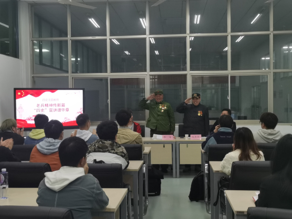 为了充分贯彻落实习近平总书记在党史学习教育动员大会上的讲话精神,深入学习“四史”,坚定理想信念,坚守人民立场,践行使命担当,真正做到知史爱党,知史爱国,知史担责。航空工程学院特邀请钱洪林、李海两名退伍老兵开展主题为“老兵精神传新篇 ‘四史’宣讲谱华章”的报告会,报告会在笃行楼工A215举行,航空工程学院党总支副书记孙军伟、团总支书记、学生党员、团总支、学生会学生干部共计42人参加了此次报告会。