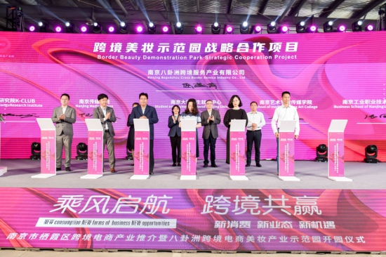 活动上,八卦洲跨境电商产业园被授予“南京市跨境电商美妆产业示范园”称号。产业园占地约100亩,总投资2亿元人民币,以“互联网+大数据+品牌+外贸渠道”为价值主线,重点打造跨境美妆智能集散中心、跨境贸易品牌展示交易中心,将成为全南京市最具有吸附功能的产业集聚体之一。