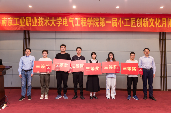 电气工程学院举办第一届“小工匠”创新文化月活动,意在引导在校大学生立志追随大国工匠的足迹,看齐“工匠精神”。第一届“小工匠”创新文化月活动4月20日开幕,历时一个月,主要包含“ABB杯”智能控制技术大赛、HAAS物联网应用大赛、“大唐杯”移动通信技术大赛及“康尼杯”分布式发电与微电网技术创新实验大赛等4大赛事,每项赛事分为理论选拔、专题培训和实操比赛,参赛团队共计146个团队,300余名学生。5月28日,电气工程学院在学术交流中心二楼报告厅举办“小工匠”创新文化月闭幕式。校党委副书记王伟,党委常委、副校长孙雁飞,电气工程学院院长杨战民、党总支副书记王静、副院长吴国中、刘颖出席闭幕式。晨光集团、大唐移动通信设备有限公司、南京康尼电气技术有限公司、阿里集团(江苏)教育科技有限公司、ABB(中国)有限公司、南京菲尼克斯电气有限公司等企业也参加了此次闭幕式。