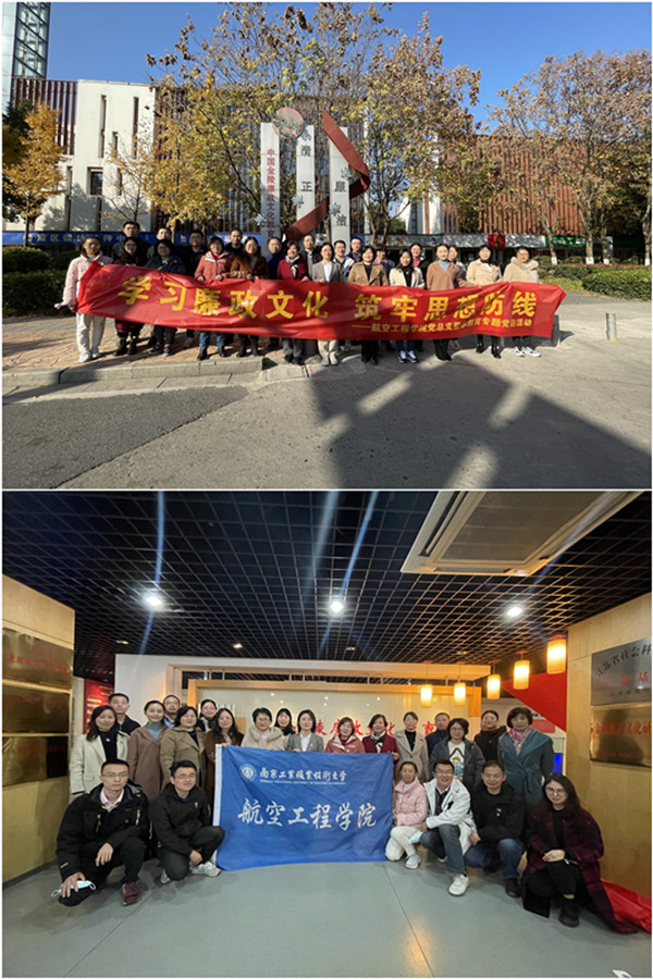 为深入学习宣传党的十九届六中全会精神,进一步弘扬共产党人坚定信仰、清正廉洁的价值观,增强纪律规矩意识,自觉筑牢拒腐防变的思想道德防线,11月24日,航空工程学院党总支组织班子成员、支部书记、教学团队主任、综合管理办公室以及教师代表前往中国金陵廉政文化教育馆,开展“学习廉政文化 筑牢思想防线”廉洁教育活动,持续推动党史学习教育走深走实。