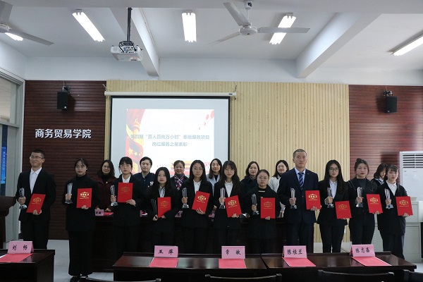 商务贸易学院第四期“百人百岗万小时”奉献服务项目表彰大会于12月22日顺利召开。学院党总支书记陈桂兰、副书记常敏、三位师生党支部书记及辅导员出席表彰大会。参加表彰大会的还有第四期“百人百岗万小时”奉献服务项目的志愿者、岗位负责人以及入党积极分子代表等。