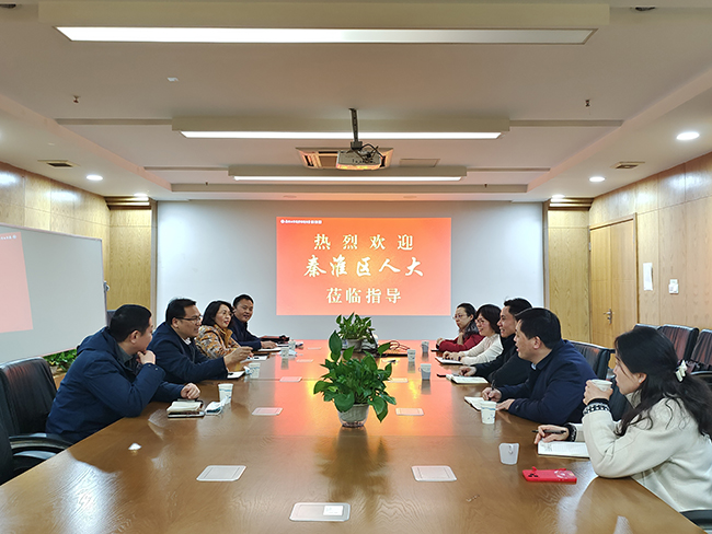 2月24日下午,南京市秦淮区人大常委会副主任刘明来等一行莅临白菜官网大学科技园考察调研。科技园管理有限公司董事长、总经理施成对各位来宾表示热烈欢迎,并参加座谈。