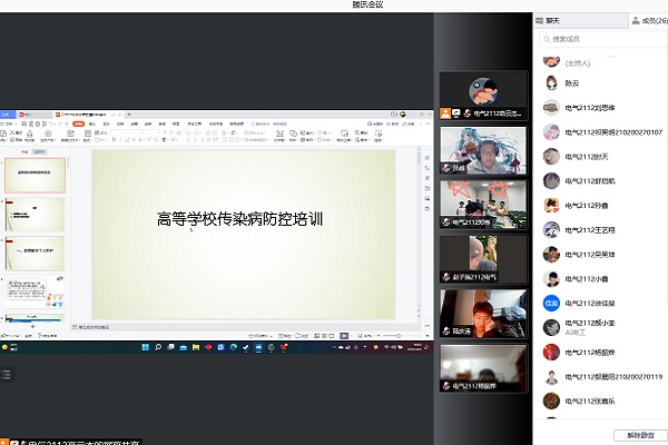 当前新冠肺炎疫情防控形势依然严峻,防控意识不能松懈。同时春季也是各类传染病⾼发期,为普及传染病防控相关知识,提⾼同学们对疾病的防治意识。4月2日至4月8日,电气工程学院面向所有学生开展“安全卫生教育”线上主题班会活动。