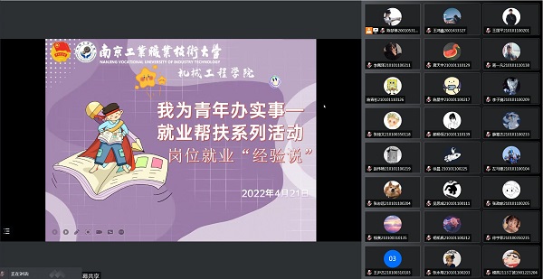 为深入贯彻落实习近平总书记关于高校毕业生就业工作的重要指示精神,紧密围绕稳就业工作大局,持续推进“共青团促进大学生就业行动”,4月21日晚,机械工程学院团总支开展了岗位就业“经验说”云分享活动。本次活动采用线上的形式,邀请了2019年西部计划志愿者李康、2017级优秀毕业生杨越来分享他们的就业经验。